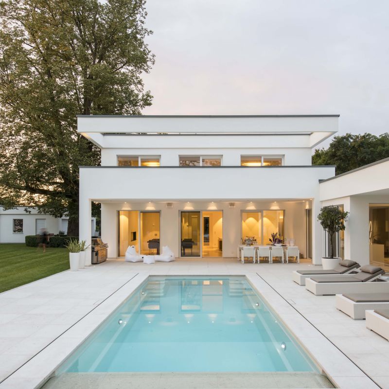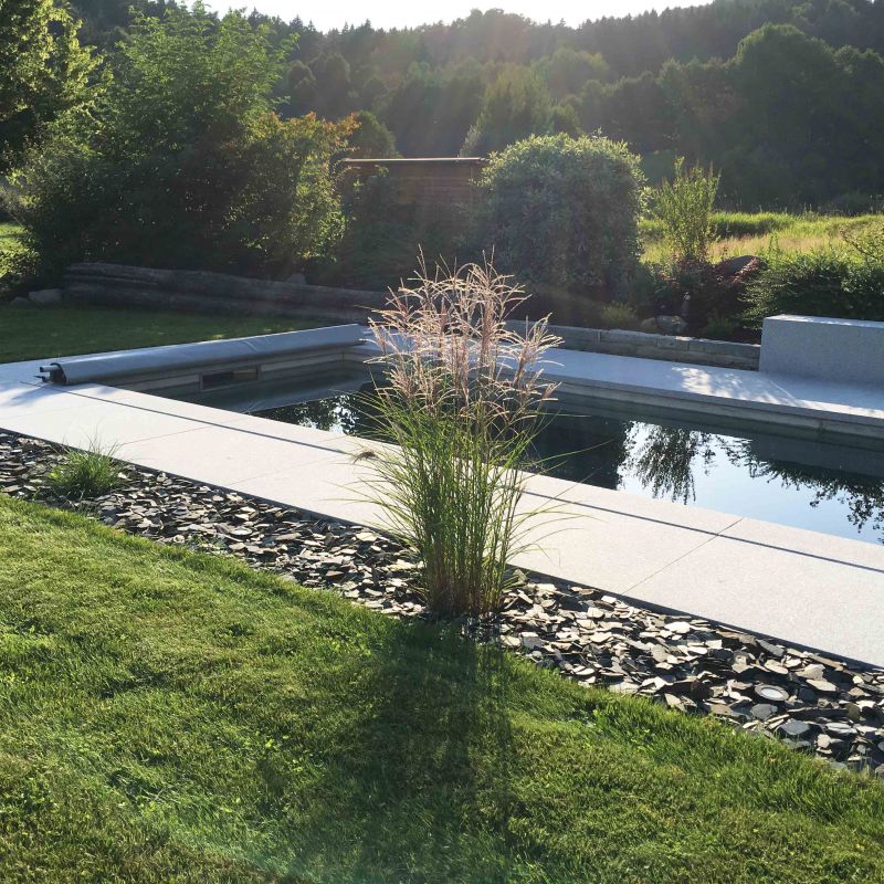 Naturstein bietet durch seine Vielfalt und Beständigkeit die Möglichkeit, den Außenbereich an die Gestaltung des Innenbereichen nahtlos anzubinden.